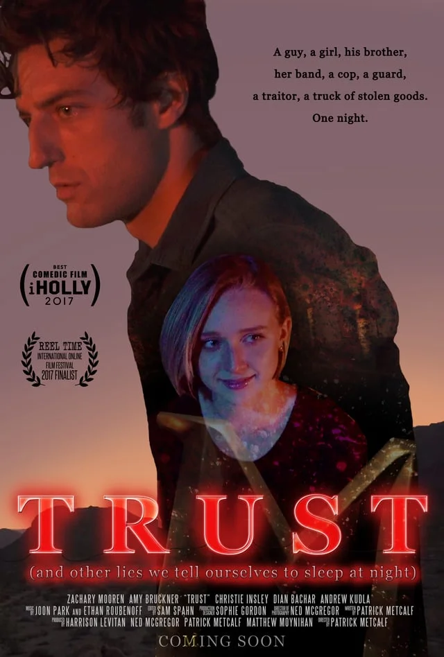 A feature film made on a shoestring budget, "Trust" tells the story of the most unexpected 12 hours of Colin Michaels' life. After graduating from college, getting dumped by his girlfriend, and witnessing a robbery, he is forced to go on an all night adventure with a mysterious woman and her band of misfits.